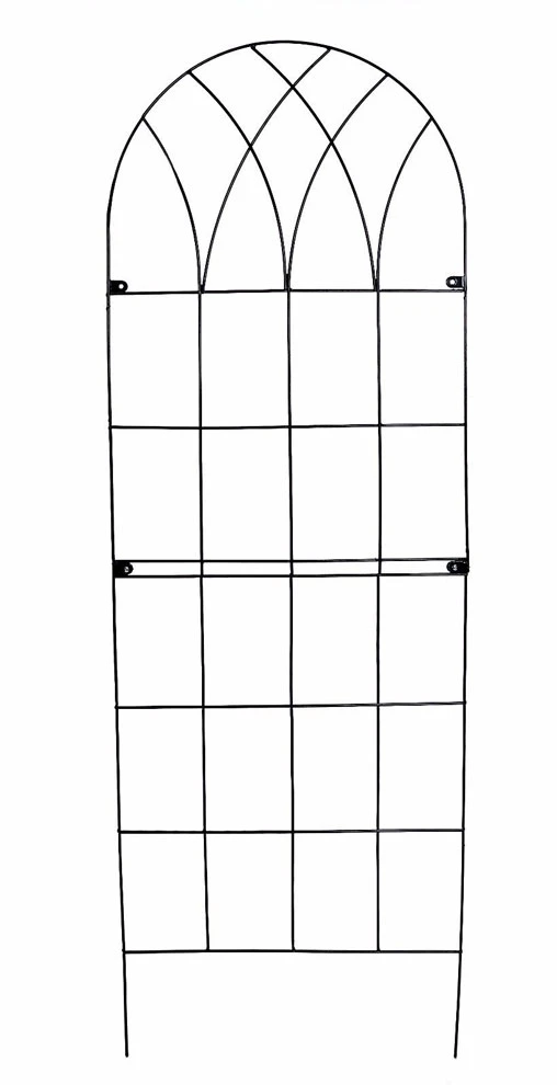 This handmade British elegant extra high 210cm Classic metal wall trellis is both sturdy and decorative featuring curved top design. Perfect for climber plants to flourish adding height and interest to your garden. This extra tall classic style trellis is perfect for supporting long stemmed climbing plants such as climbing roses. Manufacturing from matt black powder coated steel for increased durability with a black finish adding durability. Comes in two sections only requires 2 nuts and bolts which are included.