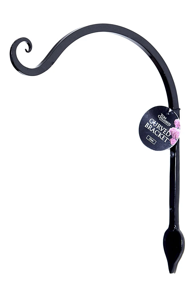 This versatile heavy duty 23cm curved bracket. Handforged metal blacksmith styling with leaf design. Ideal for a variety of uses for hanging bird feeders and many other garden objects. Finished in matt black.