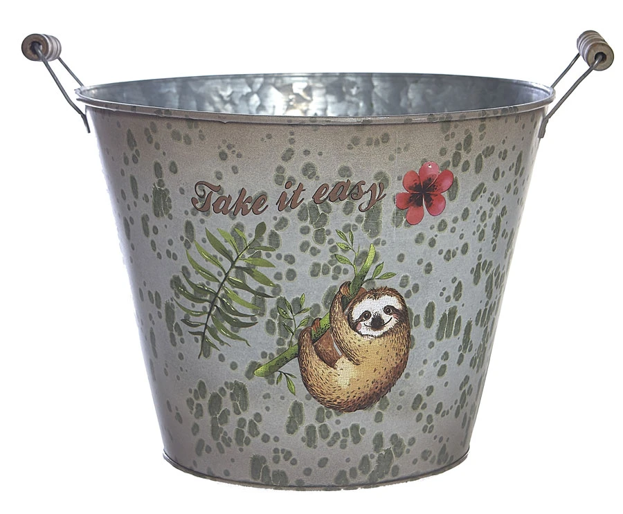 This bucket buckets have multitude of uses including as a planter or vase for flowers, firewood and kindling or magazine storage. Manufactured from galvanised metal offering weather protection if used outdoors. This fun, modern and stylish bucket feature a Sloth design with ‘ Take it easy ‘ logo.
