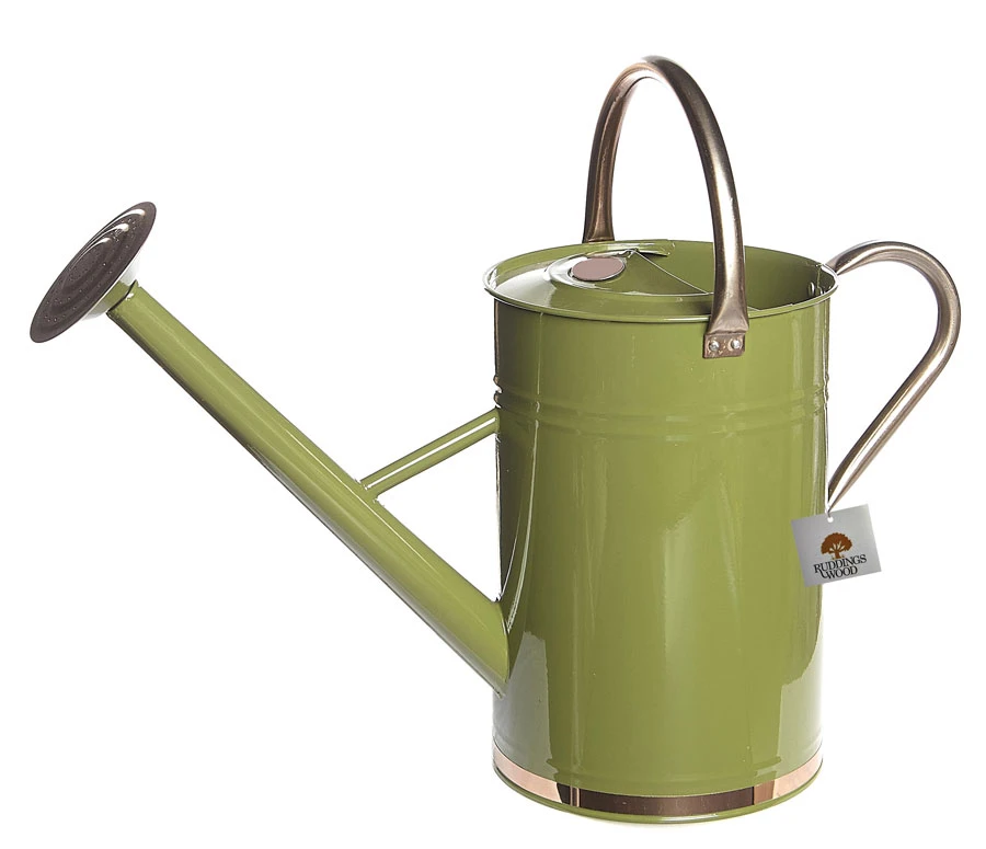These watering cans are manufactured from galvanised steel with a Green powder coating finish with copper coloured handles and trim. This traditional watering can holds 8 litres of water ideal for use outdoors and indoors. Complete with screw-on rose.