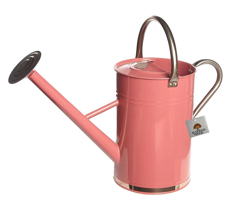 These watering cans are manufactured from galvanised steel with a Pink powder coating finish with copper coloured handles and trim. This traditional watering can holds 8 litres of water ideal for use outdoors and indoors. Complete with screw-on rose.