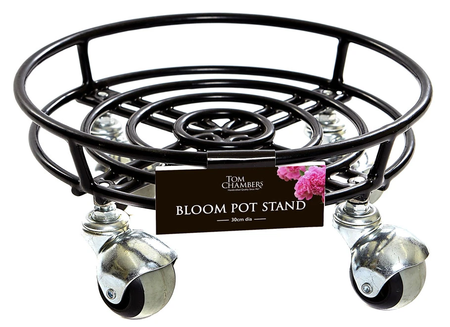 This heavy duty plant pot trolley by Tom Chambers will make manoeuvring large and heavy plant pots around your garden and home easy with this attractive plant pot stand on wheels. Manufactured from metal construction with decorative circular design and double raised rim gives extra hold and stability to plant pots.