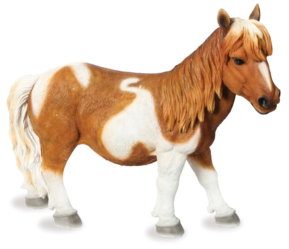 The stunning Shetland Pony ornament is from the animal art range. It is made from robust resin material which is ideal for outdoor and indoor use. The ornament has been skilfully hand painted with exquisite care using UV light fast paint to help prevent fading. This observing Shetland pony is perfect for adding character and interest into any garden.