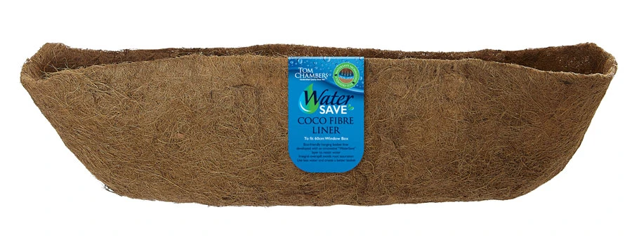 This 90cm Window Box replacement liner fit the Tom Chambers Handforged Window Box Range. These Eco-friendly coco fibre liners are developed with an innovative ‘WaterSave’ layer. This bio-degradable material covers the bottom section of the liner and works as a reservoir to hold and retain water which meaning use less water. Feature an integral built in over spill which avoids over watering and root saturation and allows excess water to drain away.