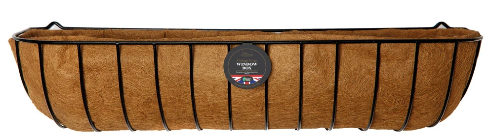 Designed in a traditional way this 110cm Cottage forge window box is made using heavy-duty steel, this window trough is the perfect visual addition to any garden wall. The basket is deep, allowing for better plant growth. Finished in a classic timeless design black coated in PVC weather resistant finish, complete with innovative coco fibre liners incorporating a ‘Water Save’ layer. Using less water. Designed and manufactured in Britain
