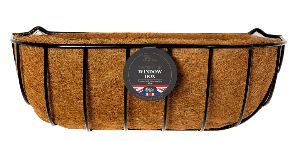 This Cottage Forge 60cm window box is handcrafted from heavy-duty steel, perfect for adding a touch of colour to your garden. Heavy duty and deep basket ensure that plants will grow better. Classic timeless design black coated in PVC weather resistant finish. Innovative coco fibre liner with Water Save layer. Integral overspill prevents root saturation.
