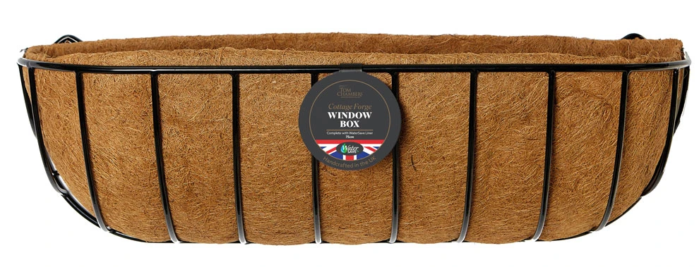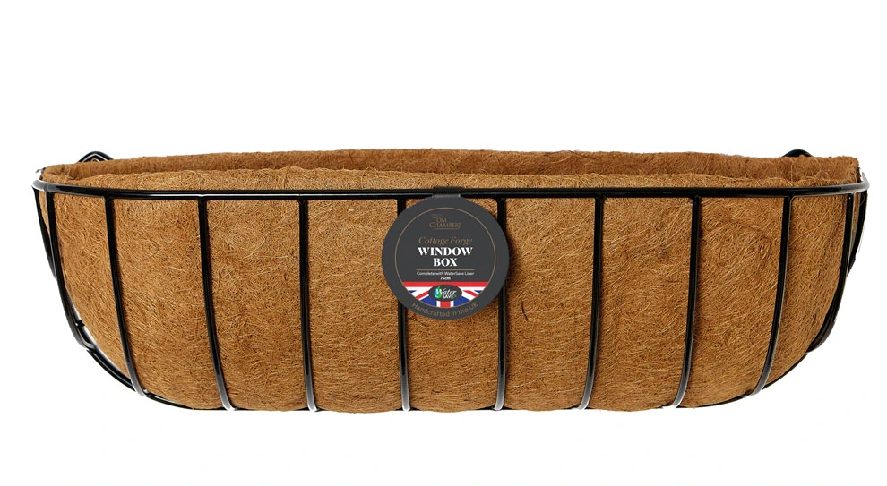 Handcrafted from heavy duty steel, this 75cm Cottage Forge window box will add colour and interest to any wall in the garden. Trough deep basket allows for better plant growth and is durable and long-lasting. This timeless design is black coated in PVC weather resistant finish. The coco fibre liner has a ‘Water Save’ layer. An integral overspill prevents root saturation. A British-designed and British-manufactured product