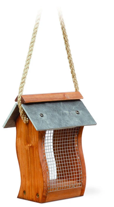 Made by Tom Chambers.hanging table peanut feeder is called the ‘Curvy Bird’.