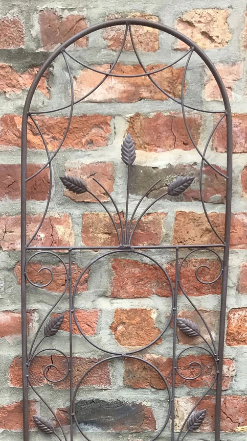 This Large Elegant Garden Trellis has an exquisite and beautifully design metal-work. This metal climbing support structure allows climbing plants to grow and flower vertically, can be used as a freestanding or used against walls, plant containers or as a privacy fence. These garden trellises are constructed from metal as a two-frame section support and coated with a rust effect finish offering protection from weathering.