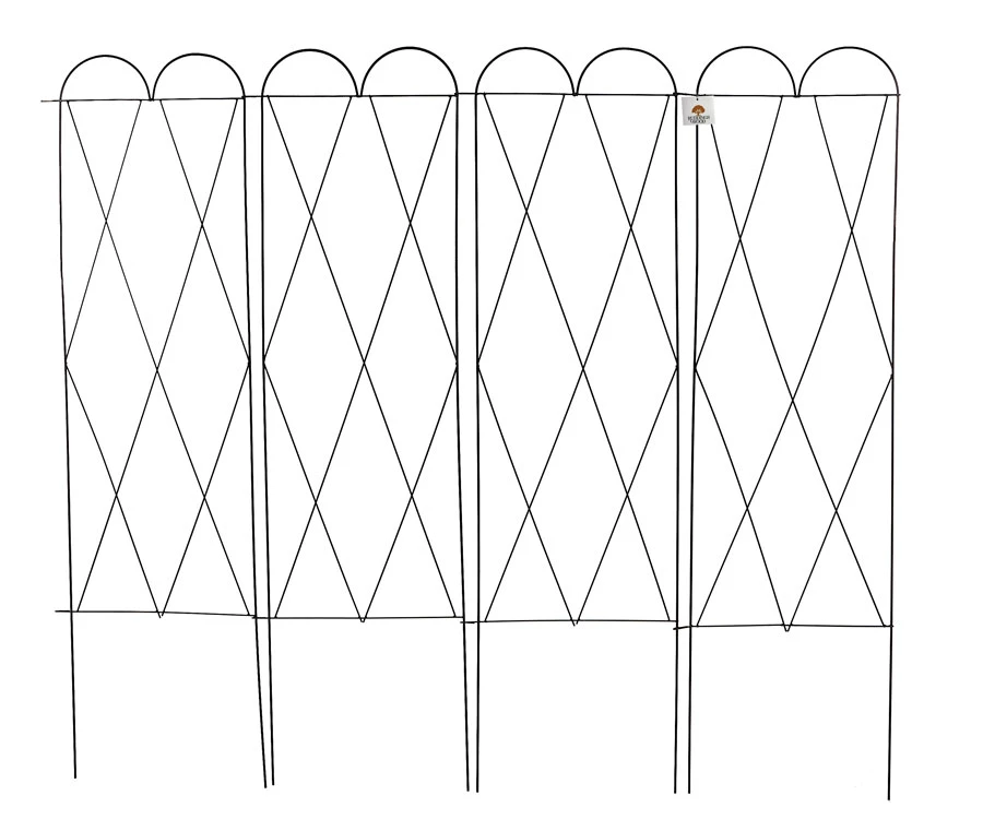 Simply can be pushed into the ground, hinged sections allows to be used as a free standing four sided plant support or against a garden wall. Ideal for support climbing plants. This trellis will be an elegant addition to any garden as a focal point. Main features lattice design with hooped top.