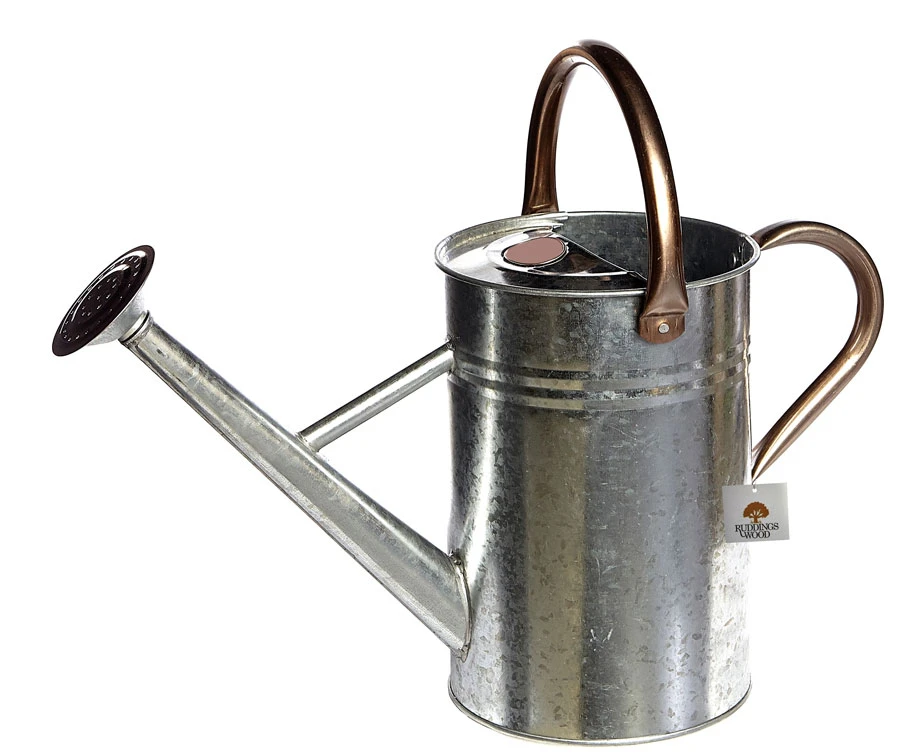 These watering cans are manufactured from galvanised steel finish with copper coloured handles. This traditional watering can holds 4 litres of water ideal for use outdoors and indoors. Features folding top handle for easy use when pouring. Complete with screw-on rose.