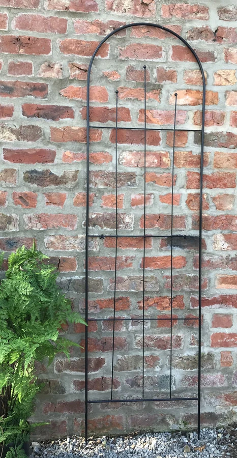 This garden trellis main features are both the height and width, measuring an impressive 180cm high and 50cm in width suitable for maximum coverage for wall, fences and for privacy trellis. Ideal for clematis, climbing rose and honeysuckle. Decorative trellis with gothic arch top with metal ironwork detailing. Comes in two frame sections, easy it fit, sections interlock together and held with 2 wing nuts (nuts & bolts included) to form a sturdy trellis. Manufactured from metal with black powder finish for weather protection.