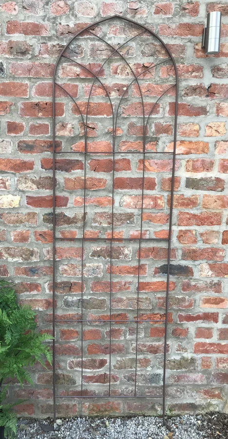 These rust effect garden trellises main features are both the height and width, measuring an impressive 210cm high and 60cm in width suitable for maximum coverage for wall, fences and for privacy trellis. Ideal for clematis, climbing rose and honeysuckle. Decorative trellis with gothic arch top with metal ironwork detailing. Comes in two frame sections, easy it fit, sections interlock together and held with 2 wing nuts (nuts & bolts included) to form a sturdy trellis. Manufactured from metal with rust effect powder finish for weather protection.