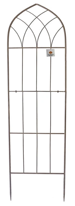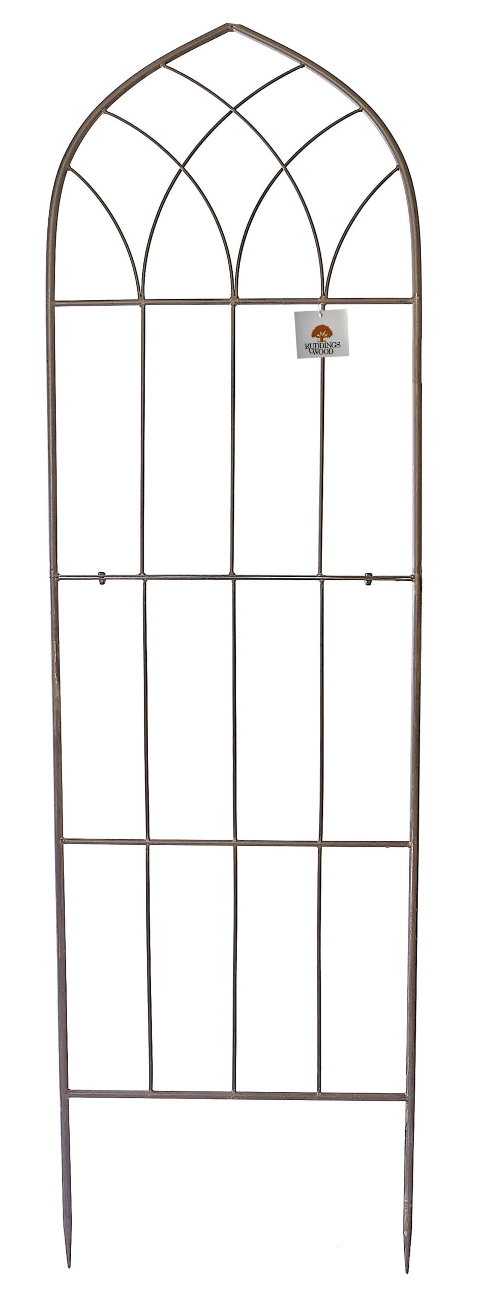 These rust effect garden trellises main features are both the height and width, measuring an impressive 180cm high and 60cm in width suitable for maximum coverage for wall, fences and for privacy trellis. Ideal for clematis, climbing rose and honeysuckle. Decorative trellis with gothic arch top with metal ironwork detailing. Manufactured from metal with rust effect powder finish for weather protection.