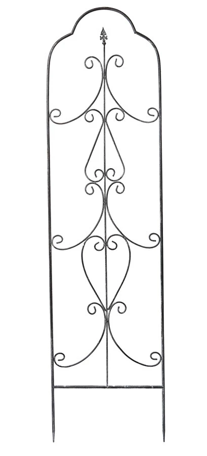 This vintage looking garden wall trellis is manufactured from steel with a vintage looking Grey & White powder coating finish to prevent any rusting or discolouring. The main features of this trellis is elegant scrolls with Fleur de Lys detailing. Ideal for most climbing plants in garden borders and planter containers.