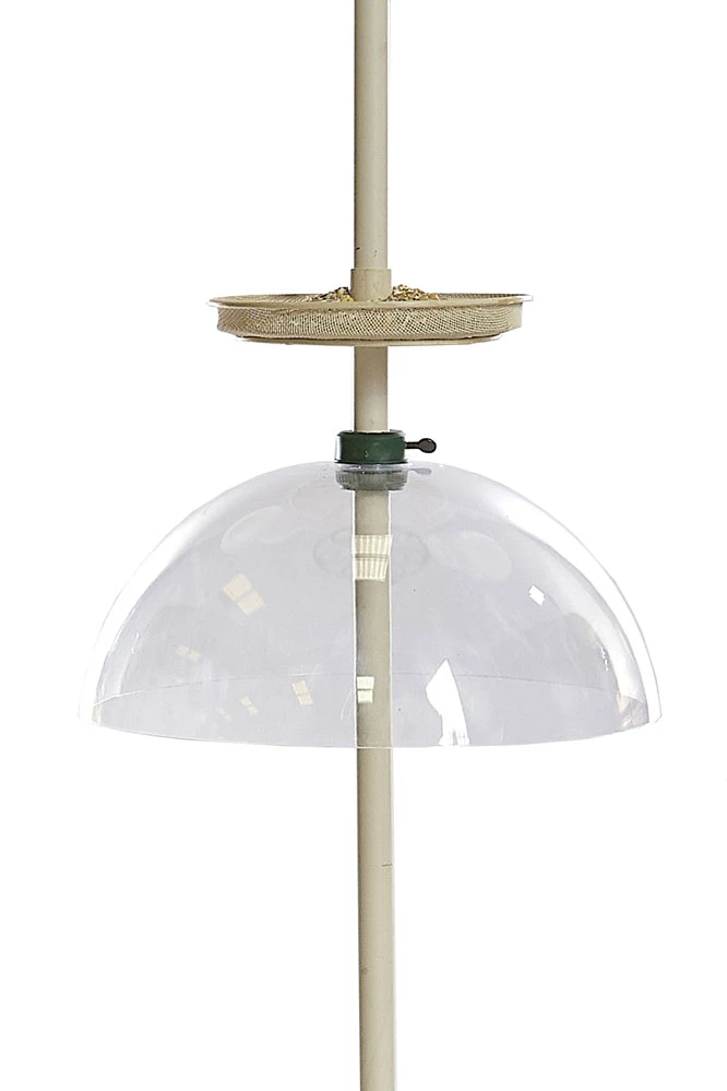 Protect bird feeders and wild bird feeding stations with this clear domed squirrel baffle.