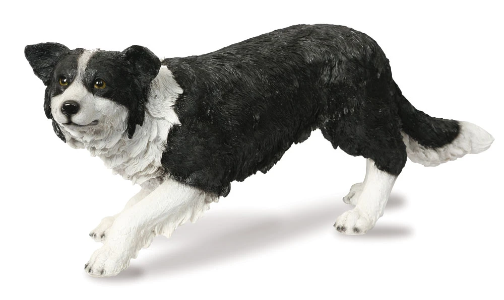 Large border collie garden ornament for out door and indoor use. This beautiful border collie has been carefully painted and has been painted with UV light fast paint to prevent fading. This border collie will enhance your garden, giving it colour and interest.