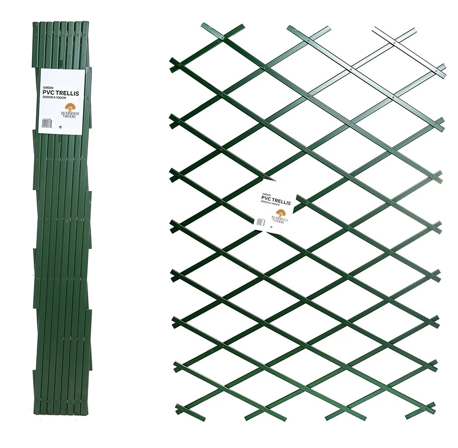 Manufactured from durable green plastic, Ideal for supporting and training the most vigorous of climbing plants and vegetable plants. These diamond shaped trellises are ideal for dividing and screening different parts of the garden or creating floral displays on garden walls and fences. Adjustable expanding up a maximum of 200cm height x 100cm width can used vertical and horizontal.