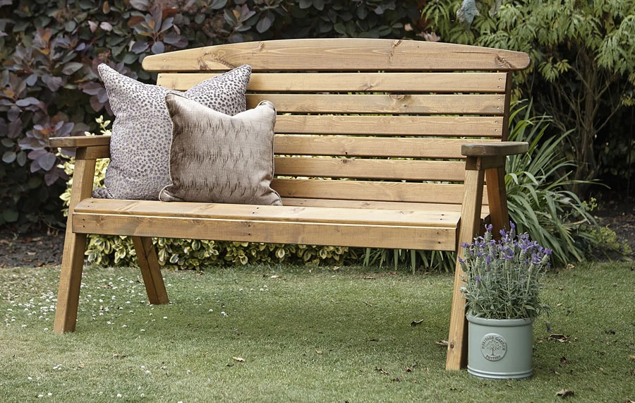 This wonderful large Hetton garden wooden garden bench are designed for complete comfort with a curved seat and front section for a better seating position. Manufactured and handcrafted in Great Britain from heavy duty timber, finished with a warm tan wood stain for weather protection.