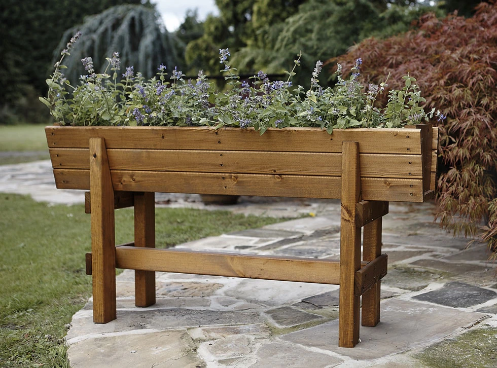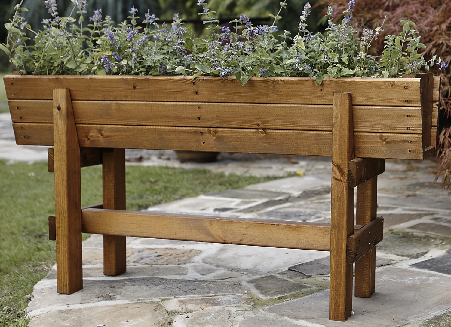 This is the perfect elevated wooden planter on legs are waisted high for easy planting and watering without kneeing or bending. Trough section can be easily removed from wooden legs. Manufactured and handcrafted in Great Britain using high quality sustainable timber.