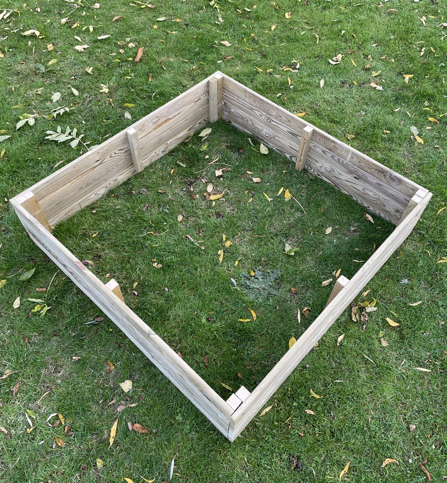 This 0.6m x 0.6m wooden vegetable raised bed is made from tanalised long-lasting timber for longevity. Handmade using tanalised sturdy timbers this vegetable planter will simplify grow your own vegetables and flowers. This arrives in four readymade panels that simply need fixing together using the fixings provided. Ground stakes are already attached for easy installation into soft ground.