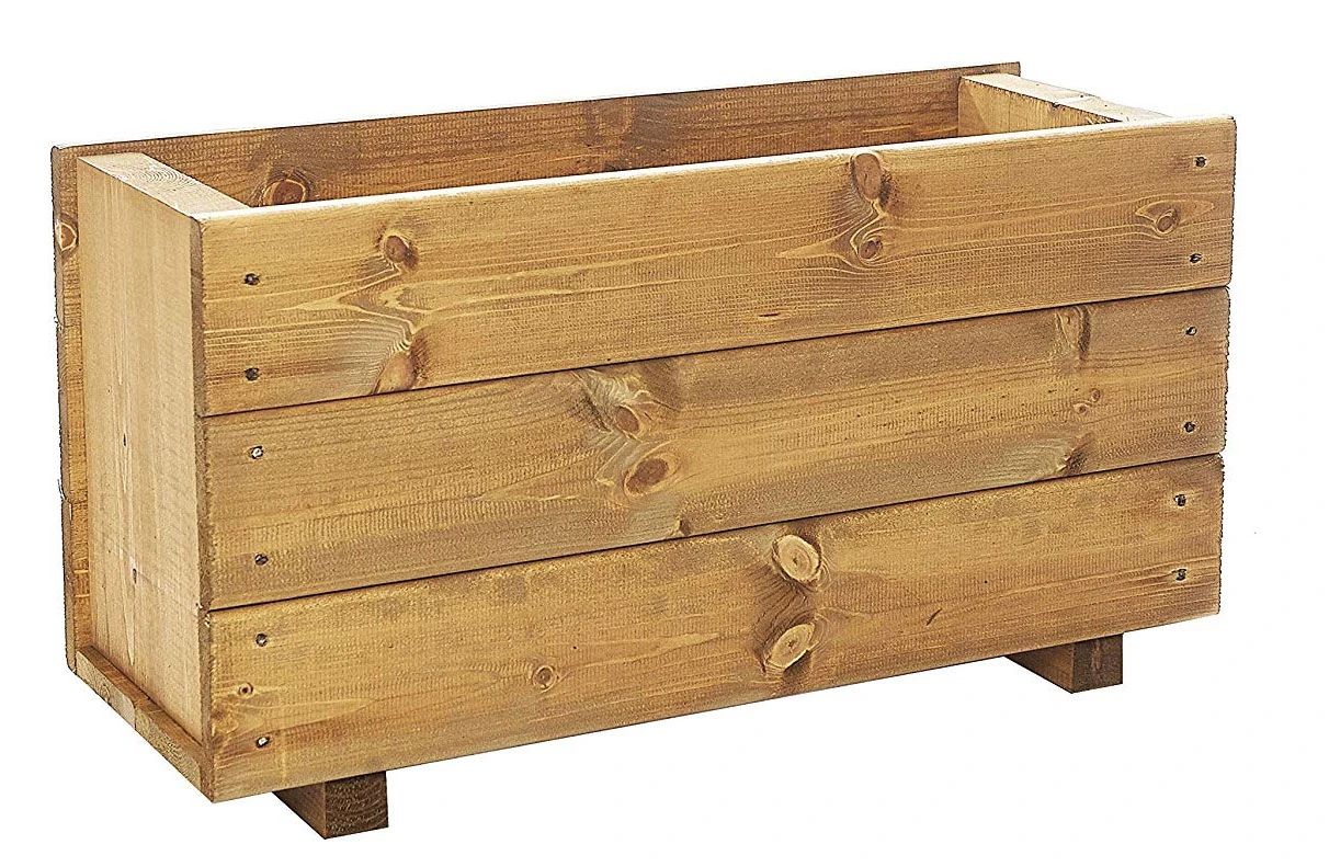 60cm deep rectangular wooden garden planters are ready built handcrafted in Great Britain. Manufactured from quality timber from sustainable sources, finished with a warm tan wood stain for weather protection can also be painted to match any garden scheme.
