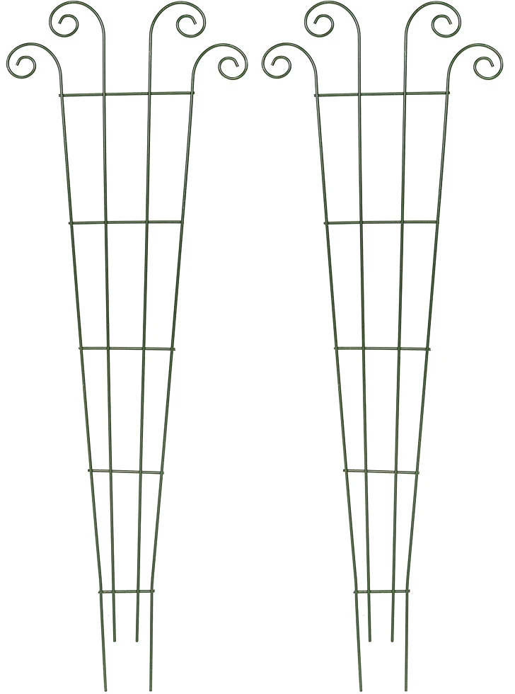 Manufactured from 5mm steel rod with green power coating to offer protect against rusting and weathering. Main features: Green with scrolled design detailing. Feet simply push into soil for secure fitting in garden pots and plant containers.