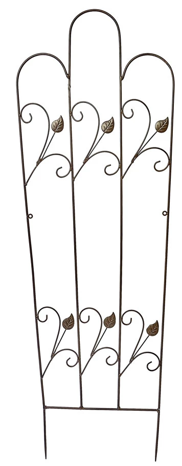 This scrolled with leaves design trellis framework can be used for climbing plants and help to define and partition dividing different parts of the garden. Perfect for creating a screen adding plant life and interest to garden wall or garden fences. Features scrolled ironwork detailing ideal support for creeping climbing plants stems to hold onto. These trellises are crafted in coated metal ironwork with a vintage brown powder coating for weather protection, robust and strong tellies perfect for providing a framework for climbing plants adding structure to garden design.