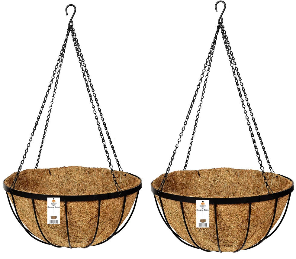 Set of 2 x 18″ (45cm) Metal Hanging Baskets with Chains & Coco liners.