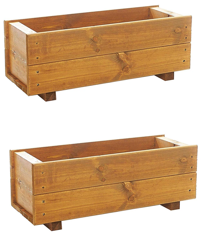 This twin pack of 60cm rectangular wooden garden planters are ready built handcrafted in Great Britain. Manufactured from quality timber from sustainable sources, finished with a warm tan wood stain for weather protection can also be painted to match any garden scheme.