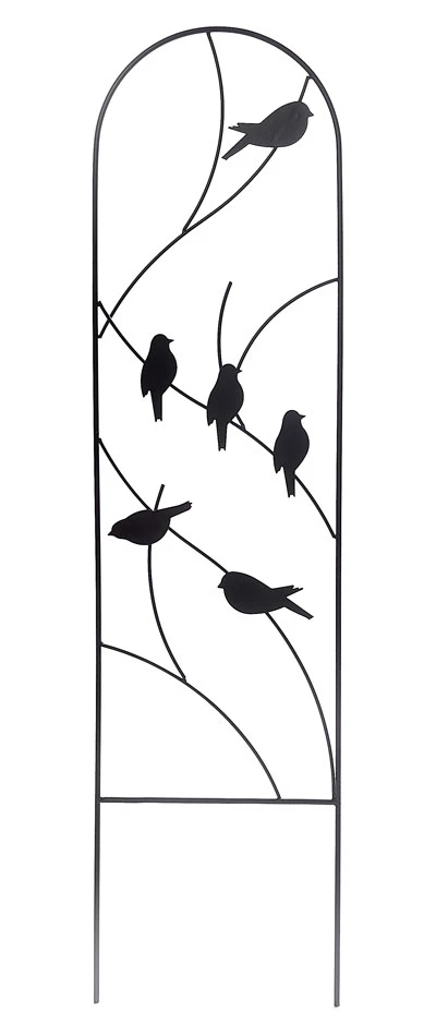 This set of 2 x bird design metal wall trellises are both sturdy and decorative featuring bird perching design. Perfect for smaller climber plants to flourish adding height and interest to your garden, patio areas or as trellis back in pot pots and containers. These bird style trellises is perfect for most climbing plants. Manufactured from metal with a black finish adding durability and weather protection.