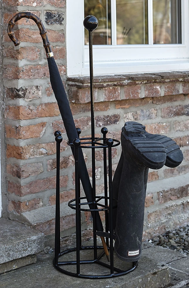 Space saving circular boot and umberella rack, made from solid rod with PVC coating for long-life. Can be used indoor or outdoors. Made from solid one peice construction. Great way to store wellies. Holds 4 pairs of wellingtons as well as umberellas and walking sticks.