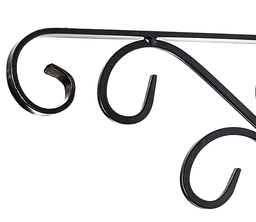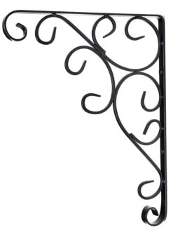 These 35cm decor wall brackets are forged from heavy-duty steel with delicate scroll detailing. Finished with a matt black Powder coating for weather protection. Vintage styling hanging basket wall bracket.