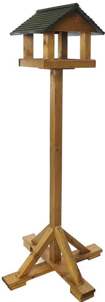 Manufactured from in Great Britain from quality Swedish redwood, features traditional styled and attractive wooden pitched roof finished in forest green colour Finished with a warm tan wood stain for weather protection. Heavy duty cross base.