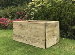 Heavy-duty deep wooden garden planter extra-large enough to create a stunning, focal point to outside area. This raised planter has extra depth which is excellent for growing vegetable and herb crops. Raised wooden feet for air circulation and drainage. Handmade premium strong robust large rectangular planter container trough. Quality planed timber treated with a tanalised wood preservative to protect against rot, maintenance free offering years and years of outdoor use and does not require an annual wood treatment. This timber planter box can if desired painted to suit any garden scheme.