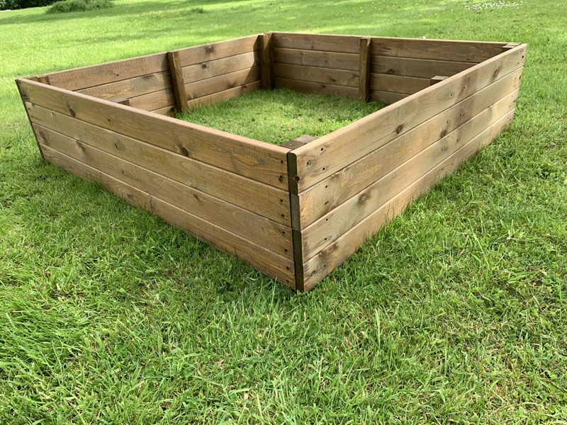 Large wooden 4 board design Raised Vegetable Bed is an excellent way for growing your own kitchen garden vegetables crops, salads or herbs. Main advantages of growing in raised bed is you can improve soil condition by adding lighter soil with organic matter, wider range of plants can be grown by adding different soil types. Raised bed helps better drainage and aeration. Soil warms up faster in spring, meaning an earlier start to the growing season, easier to manage weeds and pests.