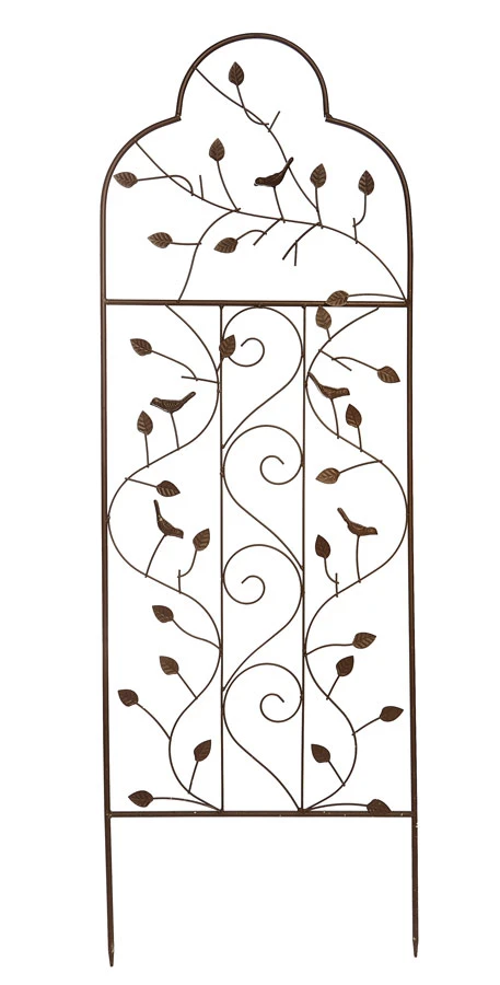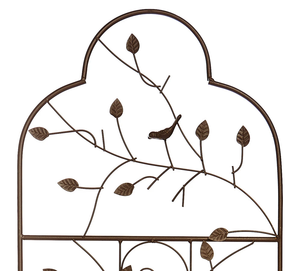 This Woodland garden wall trellis panelling can enhance the overall look of garden wall and fences, both a practicality support for climbing plants and privacy. This woodland design features ironwork branches with leaves and bird throughout with centre scrolls, manufactured from metal with rust effect powder coating offering weather protection and long-life.